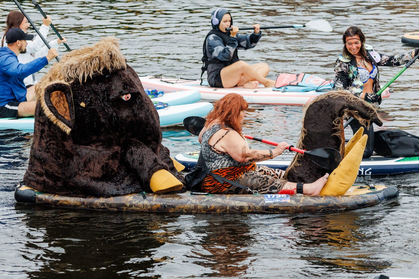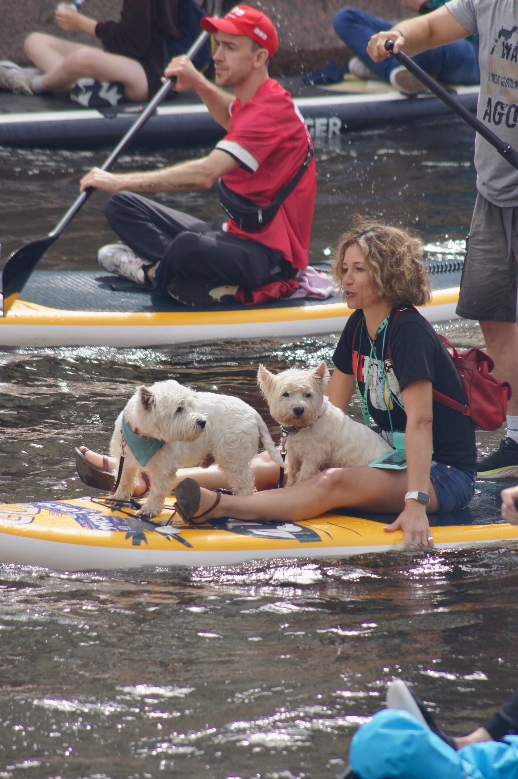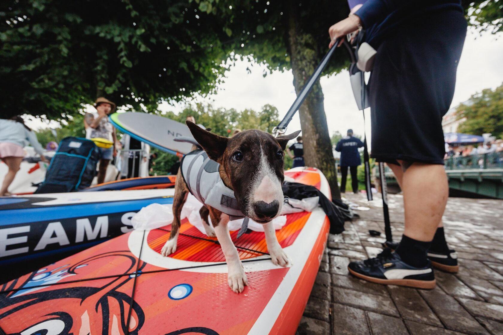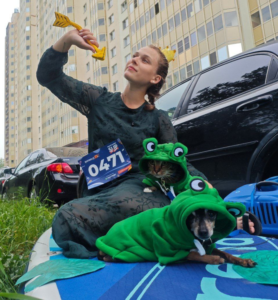 По традиции праздник начался еще на берегу Мойки у Марсова поля, где находится стартовый городок. Здесь участникам и гостям фестиваля надо было сфотографироваться в многочисленных фотозонах — начиная, конечно, с официальной юбилейной «Фонтанки SUP».