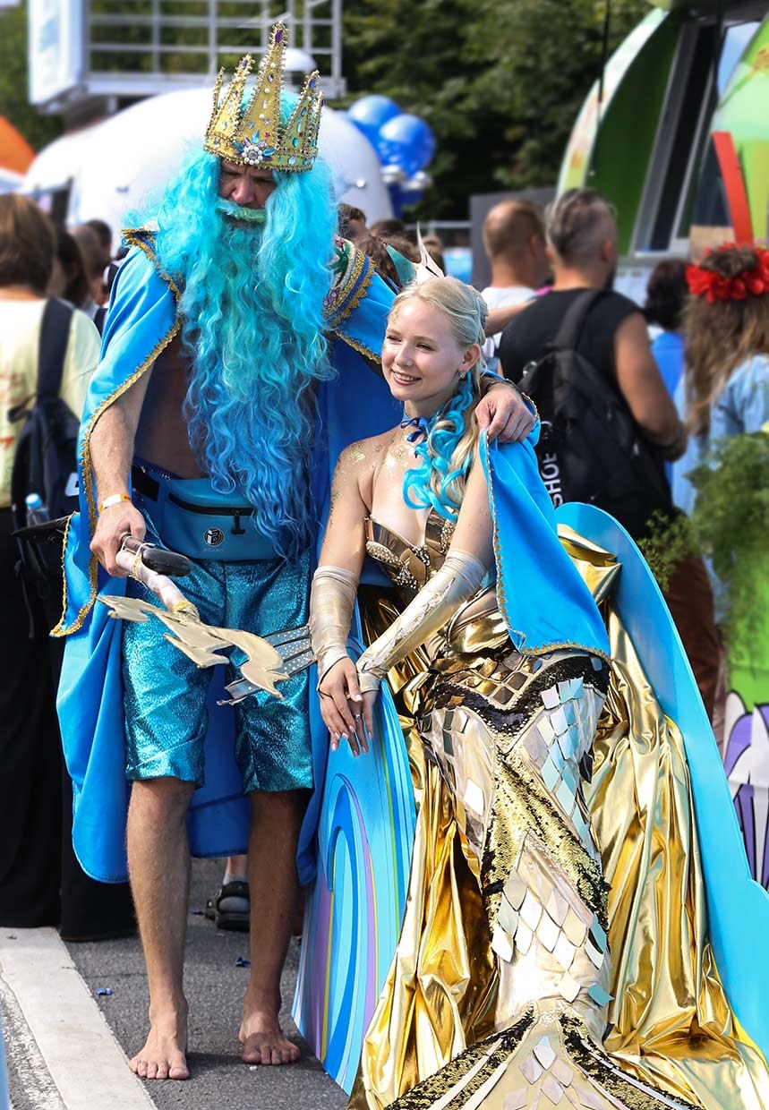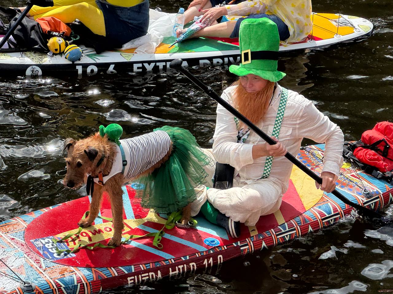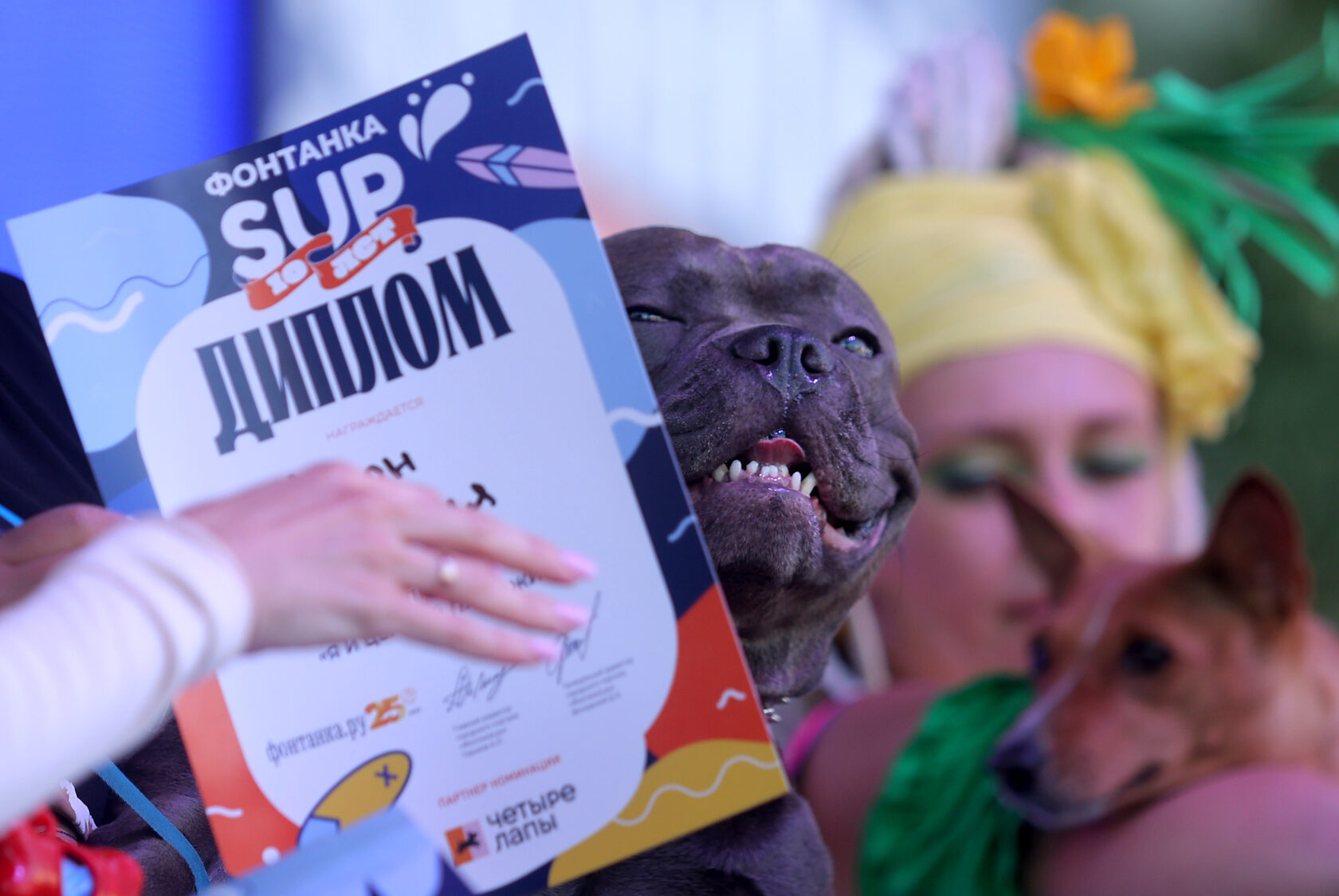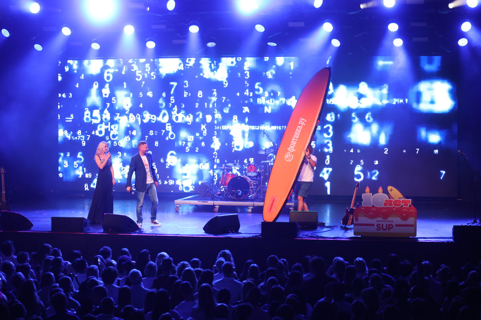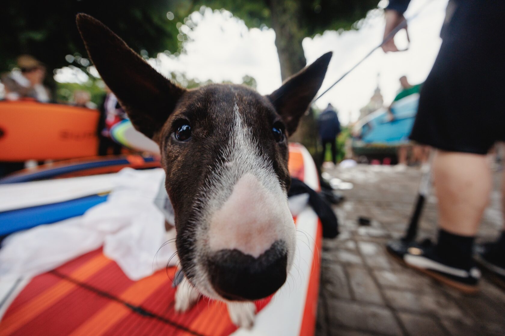 По традиции праздник начался еще на берегу Мойки у Марсова поля, где находится стартовый городок. Здесь участникам и гостям фестиваля надо было сфотографироваться в многочисленных фотозонах — начиная, конечно, с официальной юбилейной «Фонтанки SUP».